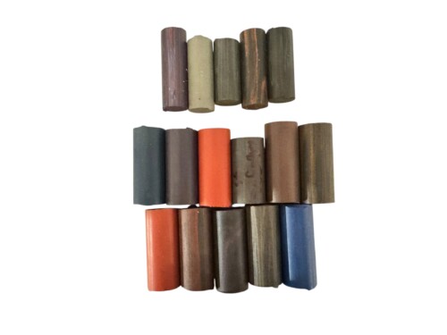 German colored ebonite cutoffs 1.6" to 2" lengths top row is 18mm diameter bottom rows are 22mm diameter 31" (0.8m) total length retail value is $140, yours for $70 -